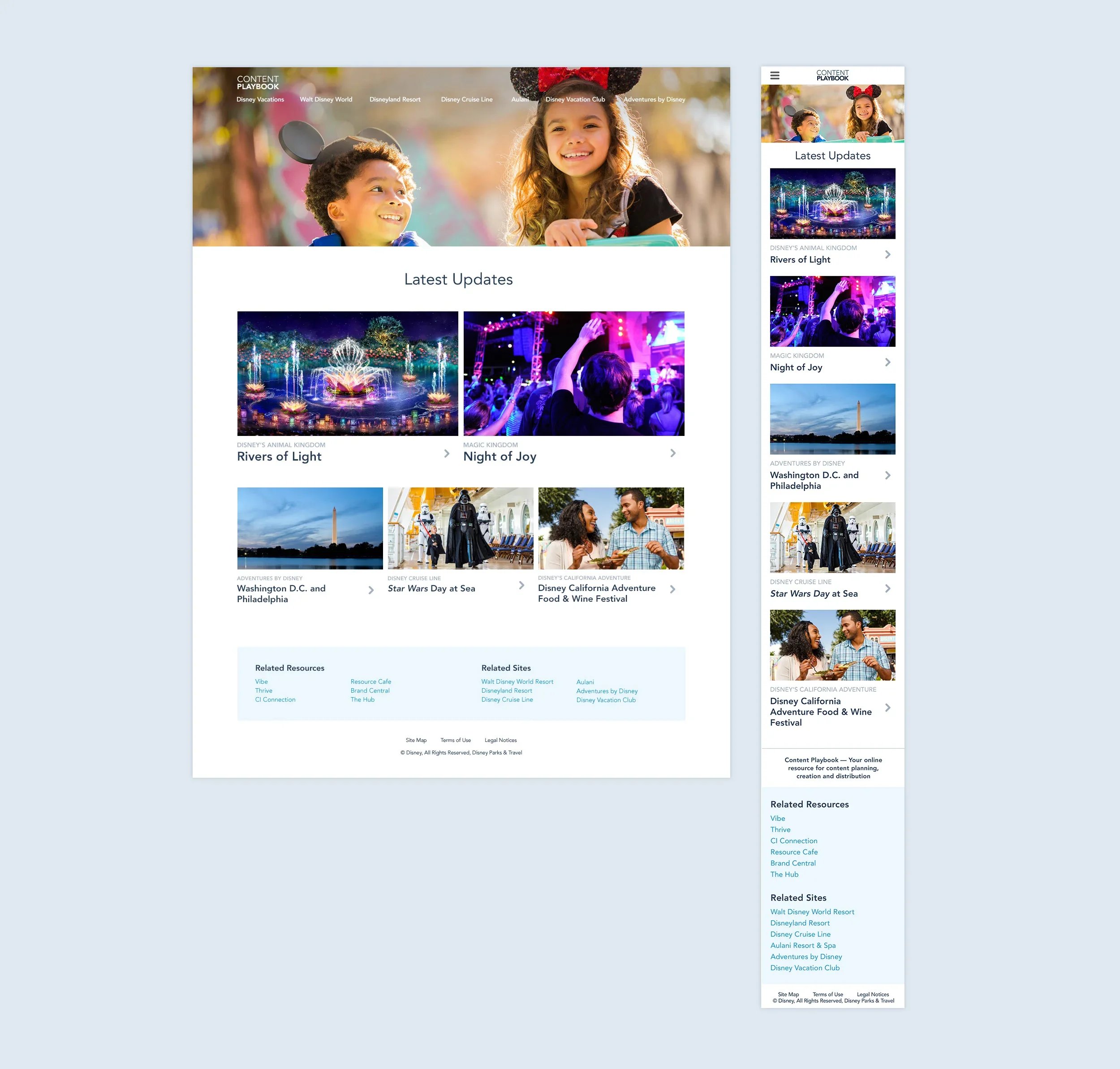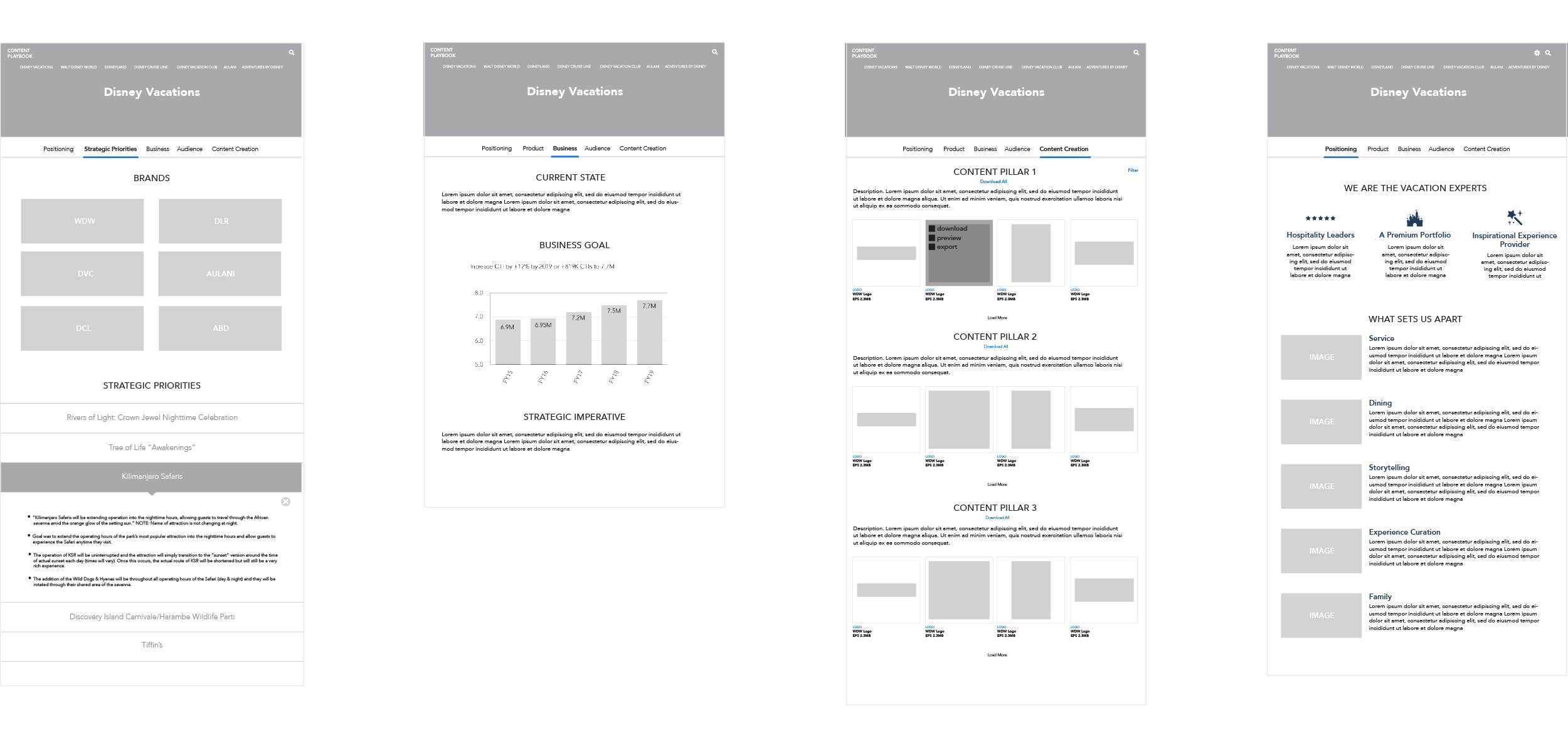 The Content Playbook is a long-sought solution to a problem that has plagued teams across Disney; how to ensure that everyone, including the newest team members, have the latest content strategy and assets available, and consider scalability as new brands hit the market. Content Playbook does just this through the use of a simple, intuitive interface that allows both content creators and users to upload, download, and share information regardless of web literacy.