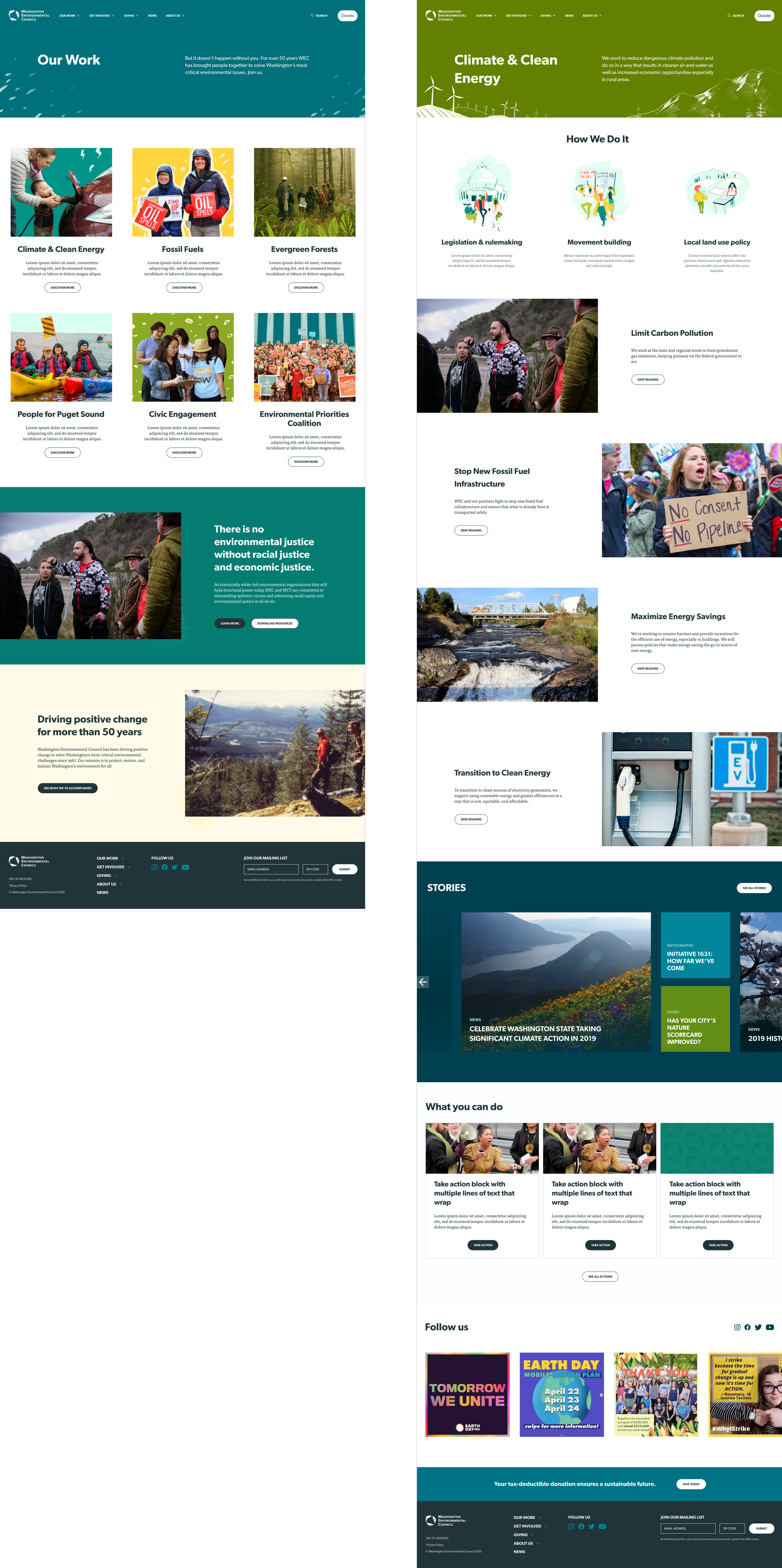 Of these options, the Washington Environmental Council chose to stick with a website redesign. They felt that that was where they needed the most help, while everything else they could do internally. We framed this homepage work as a starting point for a broader effort to redesign the entire website.